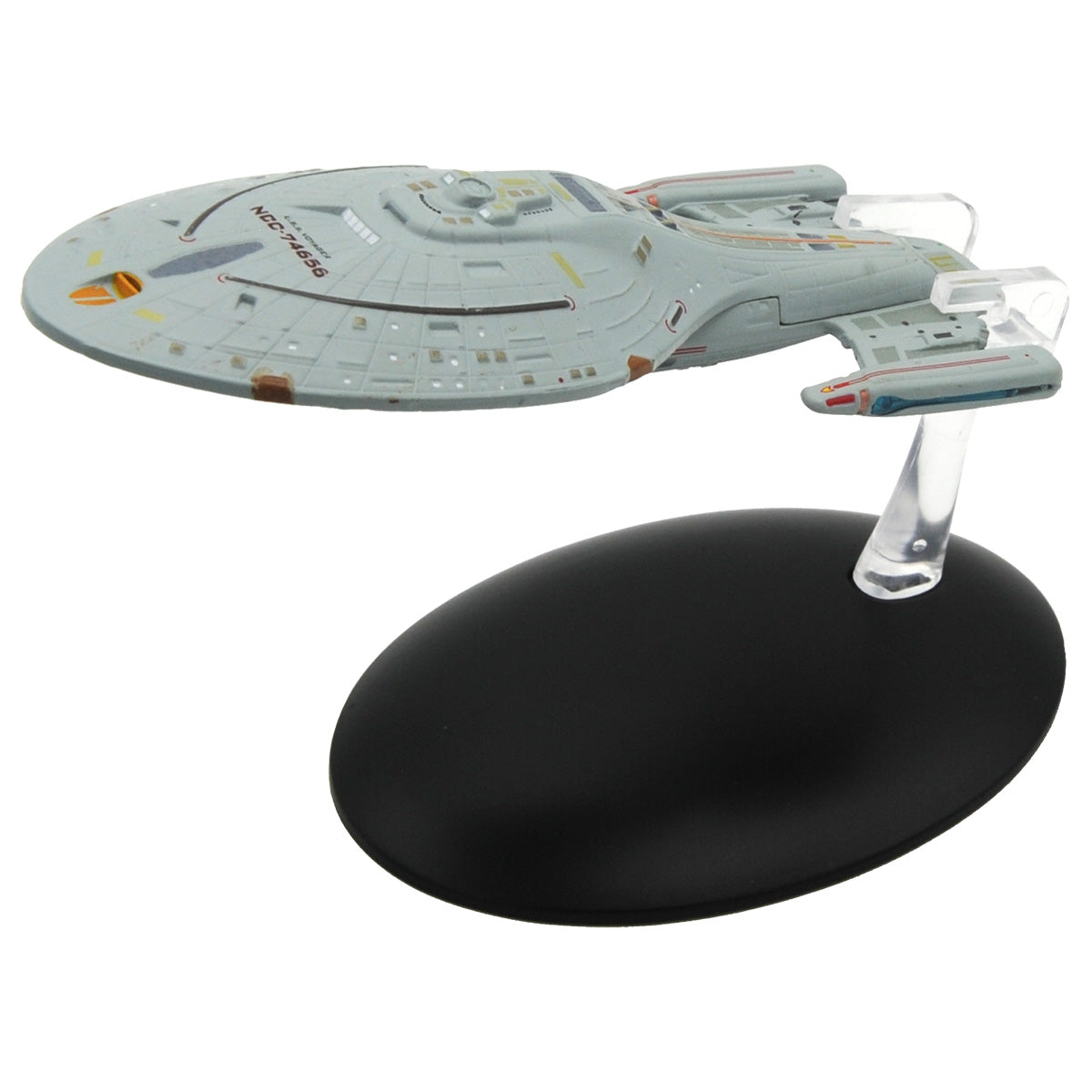 The U.S.S. Voyager NCC-74656 (Intrepid-class) by Eaglemoss, featured in Issue 6 of the *Star Trek Official Starship Collection*, is a highly detailed diecast model of the starship from the iconic series *Star Trek: Voyager*. This expertly crafted replica highlights the sleek, advanced design of the Intrepid-class starship, known for its speed, maneuverability, and state-of-the-art technology.
